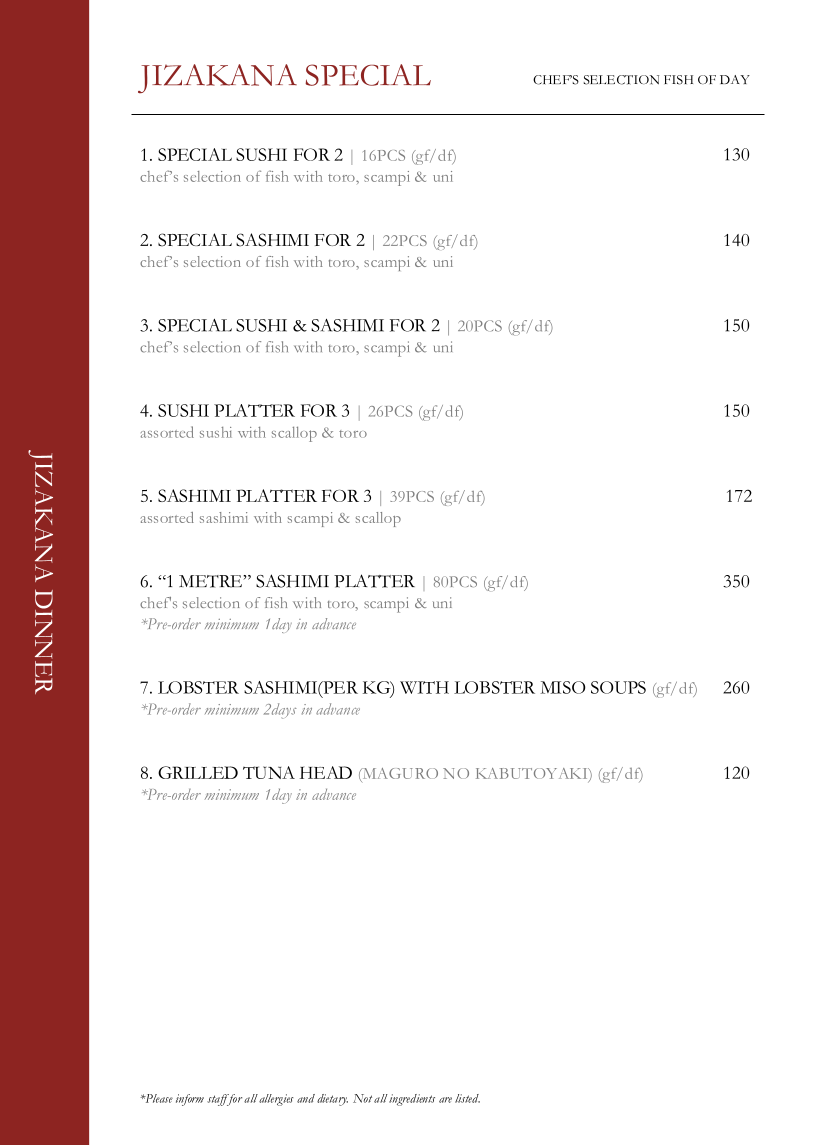 JIZAKANA SPECIAL *CHEF'S SELECTION FISH OF DAY