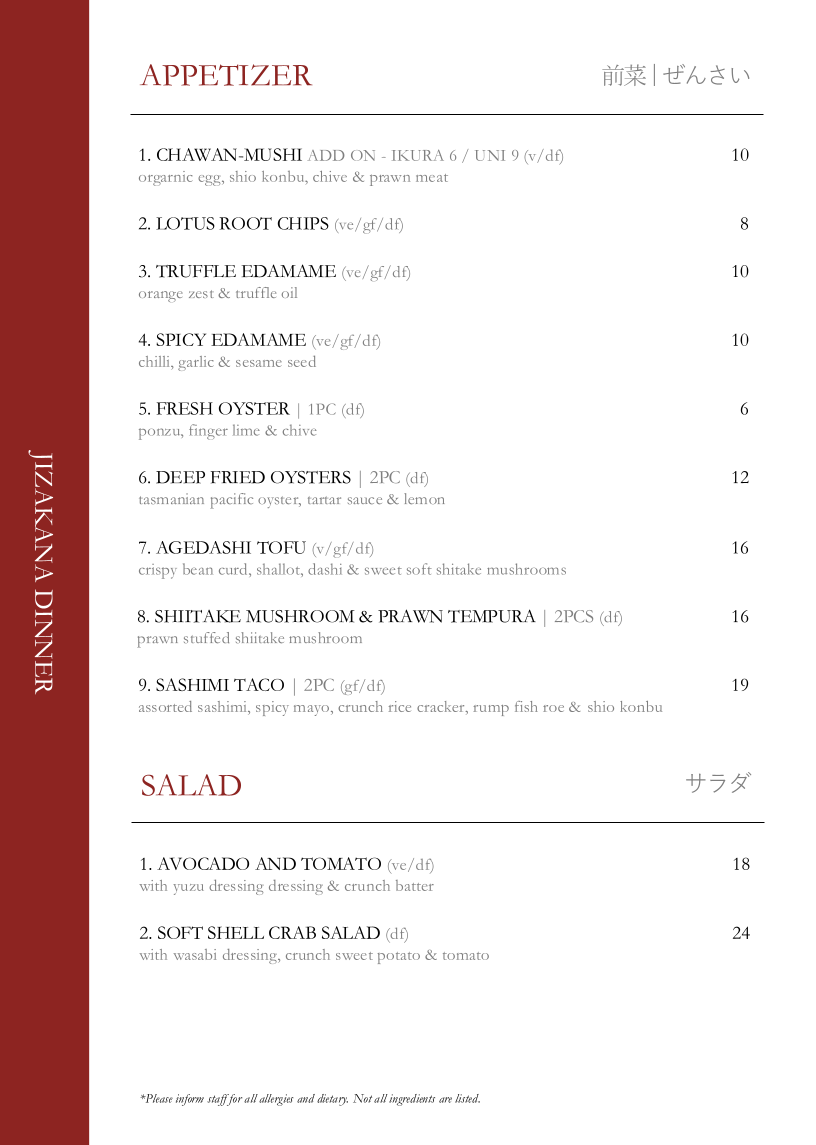 JIZAKANA TEISHOKU (LUNCH SPECIAL) | SERVED WITH STEAMED RICE, TODAY'S SALAD & MISO SOUP