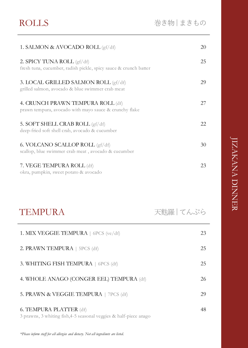 whole unagi, japanese cucumber salad, egg flakes, pickled ginger & nori